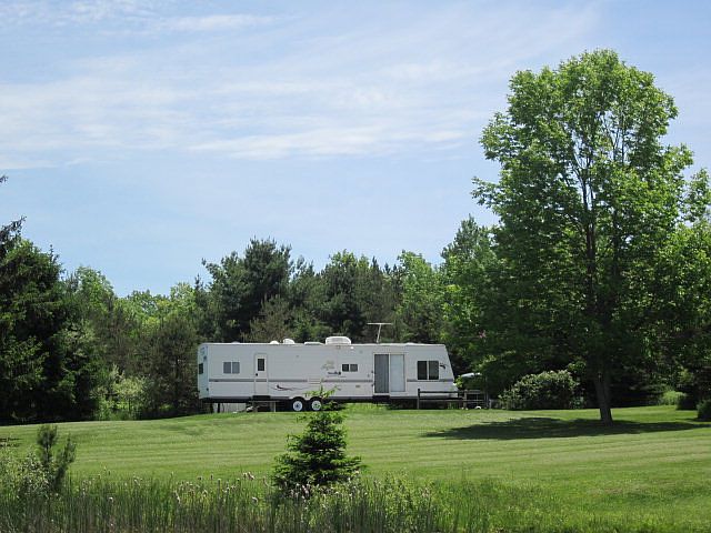 Play or build! 2004 39' Jayco Park camper on 30 x 34 concrete slab on beautiful 9.4 acre parcel with large pond & privacy! Located on year 'round road with easy access to property. Camp has 500 ga. septic, water well & electric (Natural gas at road). Shed, lawn mower & golf cart convey. NO GAS LEASES SIGNED AND ALL MINERAL RIGHTS CONVEY TO BUYER!