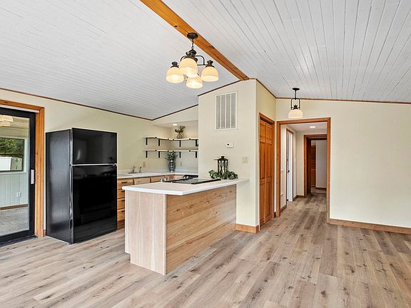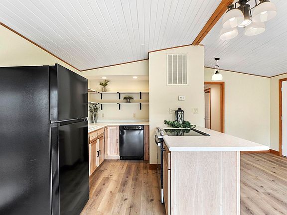 Fresh and Clean! This home has been REVAMPED for the next owners! Walk into open concept kitchen, living, and dining with vaulted ceilings and tons of natural light beaming in through the new windows! Off of the kitchen is a 3 seasons room where you can sit and enjoy your morning coffee. Walk down the hall to 3 bedrooms and 2 full bathrooms. Need more space? Head outside to an oversized 2 car garage with a newly stoned driveway and plenty of parking. Walk a short distance down to your pier spot to get on Big Turkey Lake, which is an all sports lake sun up to sundown! Super close to town with access to local dining and the park!