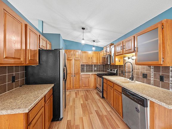 Welcome to this charming two bedroom townhome nestled in Maple Grove. Featuring a large, primary bedroom with a walk in closet, vaulted ceilings, an enclosed porch with a deck attached, and fresh paint and carpet throughout. Convenient location near many restaurants, shops, and health clubs, and easy access to major highways.