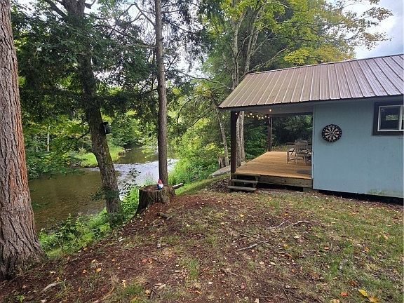 Sweet Riverfront camp on the Mad River. Cozy and updated which includes: New roof, new windows new bathroom, new flooring, new paint, new porch. All set for the weekends. The view is wonderful, very relaxing watching the wildlife and river go by, the change of seasons from your expansive covered porch. Some items will be included. Water comes from River.
