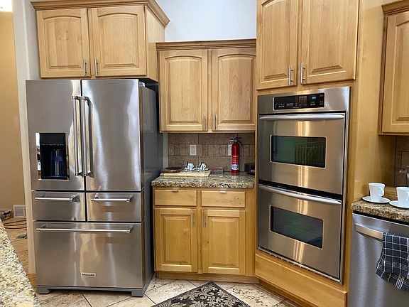 Furnished luxury custom rambler in upscale Sandy neighborhood. 5 bedroom 4 bathroom home boasts main floor master suite with walk in closets, jetted tub. Open floor plan with great room, soaring vaults, gas log fireplace, high end stainless steel appliances, knotty alder, granite countertops and travertine tile. 3 car garage with additional parking. Ample storage space. Close to parks, schools, shopping, dining, recreation center. Minutes to world class skiing. Quick and easy freeway access.