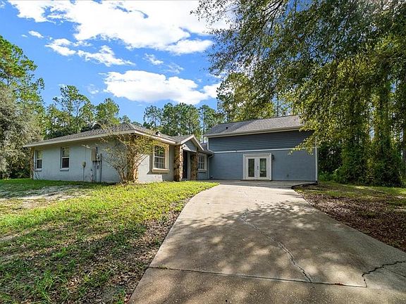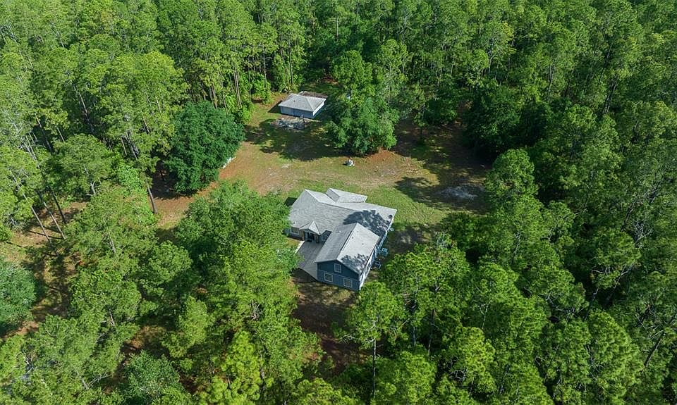 One or more photo(s) has been virtually staged. Sitting on 20 pristine acres, this wooded property features a 4-bedroom, 4-bath home with a brand-new roof and HVAC system, giving you peace of mind for years to come. The original home was constructed by Triple Crown Homes, known for their quality craftsmanship and attention to detail. Several years later, a thoughtfully designed addition was completed, expanding the property to include a spacious 23x28 family room with bath and a second primary suite with en-suite bath, perfectly blending with the home’s original architecture and style. Inside, you’ll find wide-open spaces, including a centrally located kitchen with a breakfast area overlooking the wooded backyard, and a large dining area ideal for special gatherings. The main living area’s primary suite offers a spacious bath, walk-in closet, and private access to the screened lanai. Upstairs, above the family room, there’s another full suite with its own bathroom, perfect for extended family or guests seeking privacy. Two additional bedrooms and another full bath complete this home’s floor plan. Outside, a covered pavilion with power makes entertaining easy for cookouts and get-togethers. The detached 3-car garage (30x22) provides ample space for trucks, tools, or toys, while the RV carport offers additional storage for a travel trailer or boat. The expansive backyard serves as a blank canvas, ready for the custom pool retreat you’ve always imagined. The land, zoned for agricultural use, is a balanced mix, ideal for trails, livestock, gardens, or horses. With 20 acres, you have options, keep it as one magnificent estate or explore subdividing for future homesites. With its size, updates, and acreage, this property is priced well below comparable estates in the area, making it not only a rare find in a great location but also a smart investment. All this, and you’re still just minutes from the World Equestrian Center with convenient access to both I-75 and I-95.