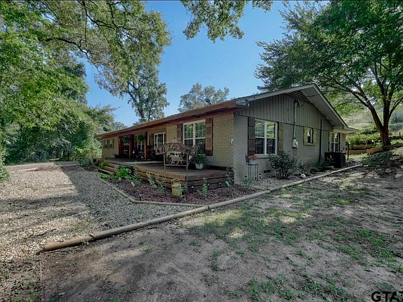 Experience spacious family living in this three-bedroom charming home, nestled on 10 expansive acres in Tyler, Texas. This home is in Winona ISD. From the moment you arrive, you’ll be captivated by the classic shutters and inviting covered front porch. Step inside to discover a formal living room boasting gorgeous hardwood floors that flow into the dining area, complemented by large windows that flood the space with natural light. Gather around the traditional brick fireplace in the cozy family room, perfect for creating lasting memories. The spacious kitchen is a chef’s dream, featuring stainless steel appliances, ample cabinet space, and a convenient breakfast bar for casual dining. Retreat to the large master bedroom, your private sanctuary with exposed brick walls, wall-to-wall closets, and enough space for a cozy reading nook. Two additional bedrooms offer more beautiful wood floors and picturesque windows, ideal for family or guests. Outdoor enthusiasts will love the vast 10-acre yard—ample space to roam, play, and enjoy nature. Raised garden beds, green house, swimming pool, barn and fenced in area for your mini ranch! Don’t miss the chance to tour this fantastic property and make it your family’s forever home. Schedule your private showing today!