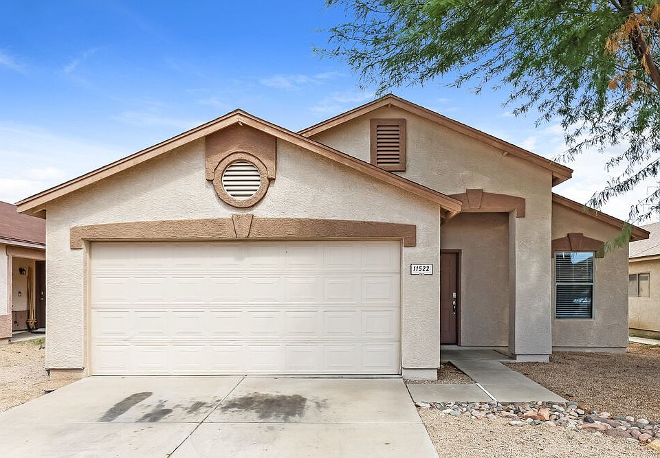 This three-bedroom, two-bathroom, Spanish-style house sits within the neatly maintained suburb of El Mirage, Arizona. With 1,756 square feet of space, you'll love every inch of this modern rental home. Admire the ceiling fan, tile flooring, and open floor plan in the living room. A spacious, modern kitchen delivers stainless steel appliances, quartz countertops, and a walk-in pantry. The privacy of a separate laundry room will help you keep your clothes washed and out of the way when you need them to be. The master bedroom comes with a walk-in closet, wood-like blinds, and an en-suite bathroom. Additional features include smart functionality, a two-car garage, and a fenced yard with a covered patio. Call to tour your lovely new rental home today.