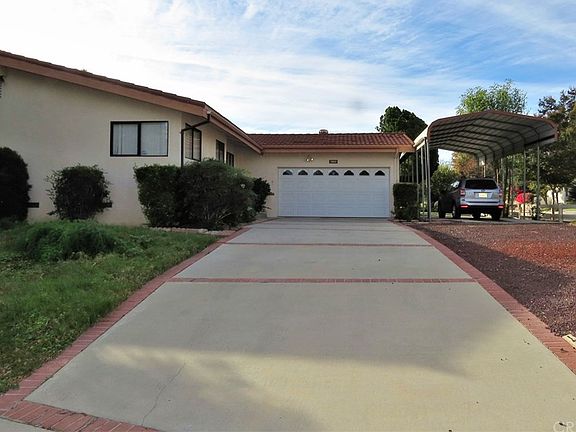 With a sweeping corner lot the concrete driveway leads up to a 3 bedroom, 2 bath home with a 2 car garage and covered RV parking. Inside you will find a spacious, light and bright, living room with skylights and vaulted ceilings that leads into the dining area. The neat as a pin kitchen includes a breakfast bar, lots of cabinetry and direct access to the garage. Bedroom #1 has an office feel with built-in desk and a contemporary style ceiling fan. The full bath is convenient to both bedrooms #1 and #2. The master bedroom has sliding mirror & glass doors and it also has a contemporary style ceiling fan. The master bath is quite spacious with glass shower doors. Back in the living room sliding wood doors lead out to a nice sized covered patio, great for those summer time barbeques. There's also plenty of grassy area for outdoor activities and a generous lemon tree. Additionally there is copper plumbing, central heat and air and high end dual paned windows.