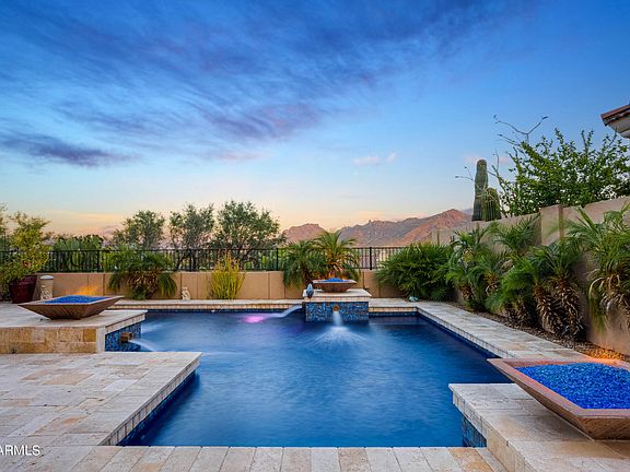 Seldom do you find a perfectly sited home that has been tastefully updated and reimagined providing a great room floor plan with an amazing primary suite retreat ! The moment you enter this home you will be embraced by the view, the great room floor plan and the expansive travertine patio with blue mosaic pool, exquisite water/fire features and mountain views. See the Document Tab for UpdatesImprovements/Enhancements......this home is the special property that seldom comes to market. Every aspect of this home has been designed for the Arizona lifestyle of outside entertaining with magnificant views, privacy and resort style living.