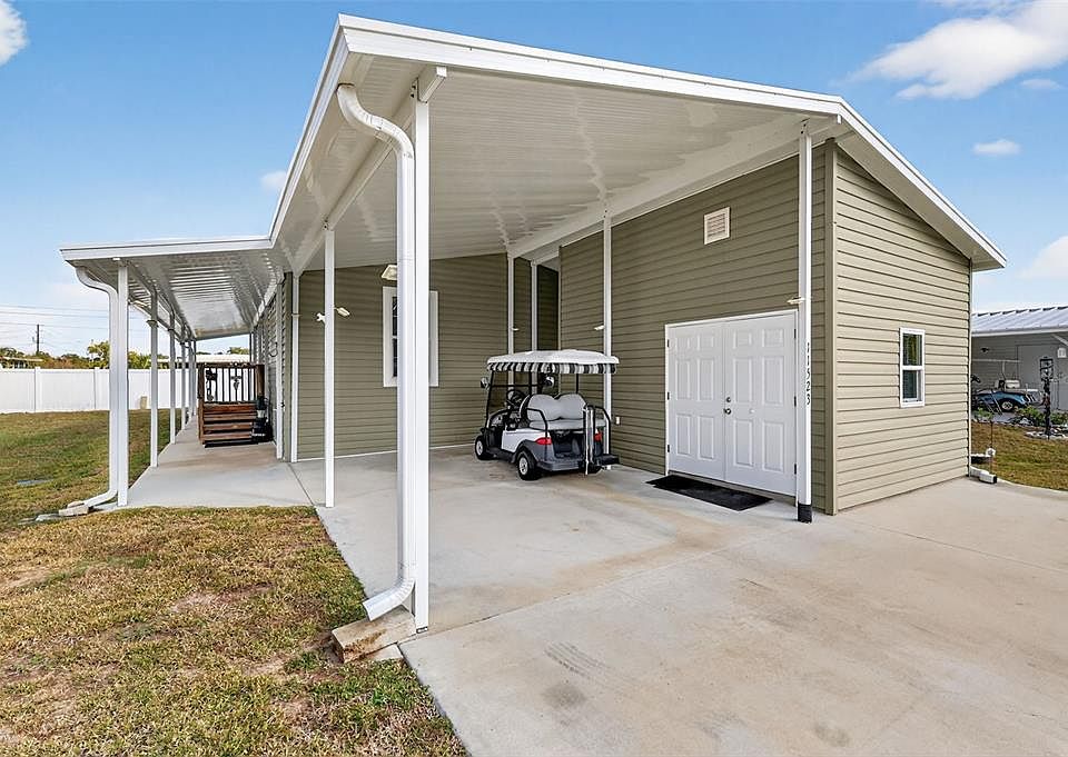 BEAUTIFUL FULLY FURNISHED HOME WITH BOAT SLIP!!! This is a must-see opportunity to own a 3-bedroom 2 bath home with access to Lake Yale! You own the land so NO LOT RENT! This home is only 4 years old and has an open floor plan with beautiful finishes throughout. There is a large storage/workshop with electricity. Large carport with high ceiling, and plenty of parking spaces. The interior of the home has been meticulously maintained and comes fully furnished, just bring your personal belongings and move right in! The home has a brand-new upgraded A/C unit (2025) as well as upgraded appliances. The golf cart with new batteries can also be negotiated!! The Lake Yale Estates Community has a quiet rural feel yet close to shopping, hospitals, and medical facilities. This great community has access to Lake Yale, a 4,000+ acre lake with incredible fishing and boating opportunities, boat slips, and community fishing pier. Other features of this community include a heated swimming pool, hot tub, RV/Boat storage, pool table, shuffleboard courts, fire pit and clubhouse with lots of scheduled activities. Your low monthly HOA includes lawn maintenance, trash, and RV/Boat storage. This is a golf cart friendly community, and the grounds are meticulously maintained with wide roads and underground utilities. There is also a beautiful sandy beach for you to sit and enjoy the sunset over Lake Yale or take your boat out for a sunset cruise! This home comes with a boat slip that has electricity making it easy to keep your boat ready for an excursion. You don't want to miss this lovely home. Call today to schedule your private showing. WELCOME HOME!