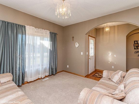 Large pristine 5 bd ranch, almost 1 AC, petfence, lots of distance to neighbors. Many updates: new natural hardwood floors, new carpet upstairs, new granite/sinks/fixtures throughout, 50 Gal HWH 2016. Kitchen has lots of cabinets, pantry closet, new smudge proof stainls appliances, lg dining area. Rounded corners, solid core doors, wood blinds, Gas frpl & surround speakers stay in lvg rm. Addtl sitting/dining rm, lg master private toilet, shower & whirlpool, 2 more beds up. Daylight basement has lg family room recessed lights, 2 more bedrms & full bath. Sink in laundry/mudrm & also sink in bsmt storage area lots of wood shelving. Humidifier on furnace, Culligan Water Soft stays, radon mitg done, sump batt backup. Lg deck newstain, lg garage side dr has xtra bumpout, also an xtra indoor rm dog kennel to outside. Storage shed stays. 10 minutes to Grimes, 20 to DM, close to Jester Park, Nature Center, Golf, Equestrian Center & the lake.