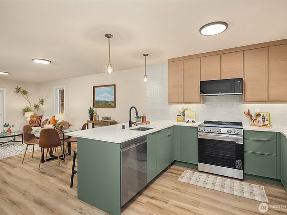 From trusted local builder Collz Inc, this 2-bedroom Matthews Beach home lives larger than most with its efficient 2-story design. Set on a quiet street, the open main floor is ideal for entertaining, featuring a stylish kitchen with rare walk-in pantry and a living area that flows to a private back patio. Upstairs, the primary suite offers a full bath and walk-in closet, joined by a second bedroom, full bath, and laundry. Thoughtful touches—mini-splits, custom blinds, washer/dryer—make it move-in ready. Dedicated EV-ready parking adds convenience. Blocks to Matthews Beach Park and minutes to SR-522 & I-5.