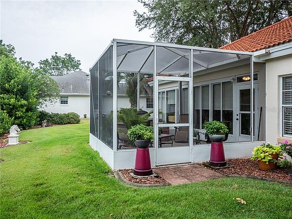 WHAT A SHOW STOPPER! San Marino with 2,025 sq ft of absolute gorgeous!! The minute you pull up to this house you will SAY WOW! Paver driveway and sidewalk and meticulously landscaped yard with curbing all around. Tile roof. Beautiful stained glass entry door opens up to a breathtakingly decorated home that can be yours fully furnished. Laminate flooring that looks like wood, high ceilings with crown molding, all neutral colors. Formal dining room opens to living room which opens to a fully enclosed 234 sq ft lanai with heat and air. But wait! The lanai opens up to an outdoor birdcage that actually has a see through roof so you can use year round, even when it rains. Master bedroom is just heaven with its own his and hers walk in closets and a TOTALLY REMODELED Master Bath with separate vanities that boast corian counters, soaking tub and step in shower. The second bathroom has also been totally remodeled as well. Now if you are looking for a real office, this one comes with all the bells and whistles and one you would love to spend time in. And last the kitchen - Solid wood cabinets, stainless steel appliances, beautiful granite counters, updated lighting fixtures and just a dream kitchen to work in.