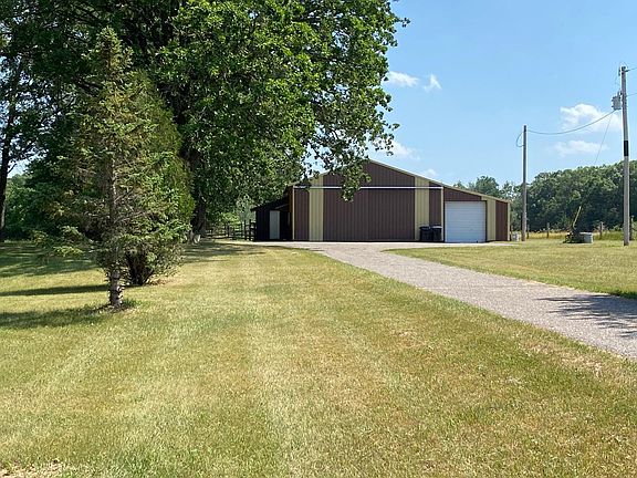 This property has been well maintained all living is on one level with 3 bedrooms & 2 baths. Situated on 10 acres with a mix of woods, pasture & some lowland that you can watch all the wildlife. Enjoy your morning coffee in the Gazebo or out on the 24x12 deck. If you desire to have some larger pets the property also has a 46x56 pole building with concrete & Electric. Included in that building is a garage space 14x56 with a 9ft high door. 32x32 storage area with a 11.5 ft high door, also an area for the animals 31.5x24 with two box stalls and hay storage above. There is a tack room 8x9.5. The pasture is already fenced but has not been used for several years. All this and you are still not far from town.