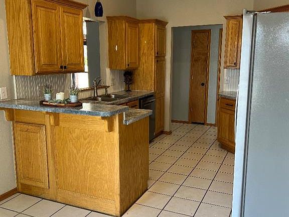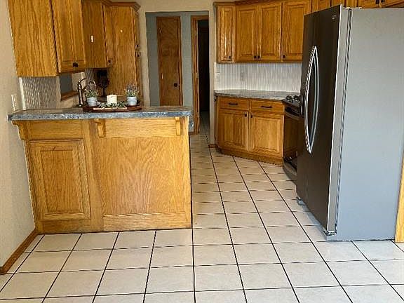 Must see! This home has a kitchen with generous counter space and cabinets, updated backsplash, with a breakfast bar. Gas fireplace in living area, ceiling fans in living room and bedrooms. Dual sinks in master and hall baths. A wood deck is attached to the back patio, perfect for entertaining or spending time. The home has 3 bedrooms and an office space. Property also has an in ground storm shelter. Roof is two years old. Heat and air units are one year old. Neighborhood has ponds stocked with fish a large playground, and paved walking/running path for Oakwood East residents only.