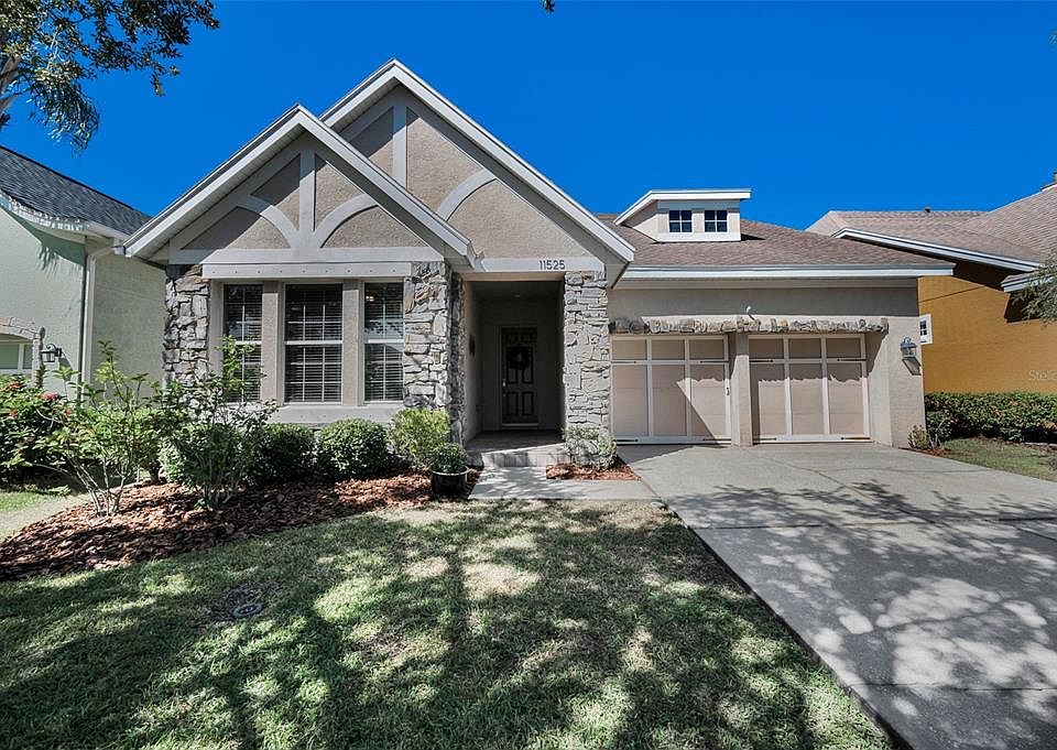 Welcome to 11525 Meridian Point Drive, a stunning 4-bedroom, 3-bath home with a 2-car garage located in the highly desirable, guard-gated community of Waterchase. With 24-hour security, resort-style amenities, and top-rated schools, this neighborhood is one of Tampa Bay’s most sought-after addresses. Featuring tree-lined streets and a park-like setting, residents enjoy community events and outdoor activities. This elegant home showcases thoughtful design and quality finishes throughout, including granite kitchen counters, 42" wood cabinetry, butler’s pantry, walk-in pantry, double wall ovens, gas cooktop, built-in microwave, stainless steel appliances, including a newer Bosch dishwasher, high efficiency washer and dryer, crown molding, upgraded baseboards, recessed lighting, plantation shutters, 10-foot ceilings and 8-foot doors. The spacious floor plan offers a large family gathering area with built-in ceiling speakers and wall mounted large screen TV, a huge primary suite with double tray ceilings, french door to lanai, two walk-in closets, and a luxurious bath with garden tub and dual sinks. Enjoy Florida living at its best with a large covered lanai with pavers, perfect for entertaining, and boasting a spacious backyard offering both privacy and peaceful nature views. Beautifully landscaped, including heirloom rose bushes. Additional features include a gas water heater, hurricane shutters, and a versatile split plan layout designed for comfort and convenience. Flood zone X and 30 ft. elevation. Waterchase residents enjoy world-class amenities—resort-style pools (including a lagoon-style pool with waterslide), clubhouse, state-of-the-art fitness center, tennis, pickleball and basketball courts, playground, and endless community events—all within minutes of shopping, dining, beaches, and Tampa International Airport. Don’t miss this opportunity to own in one of Tampa’s premier communities!