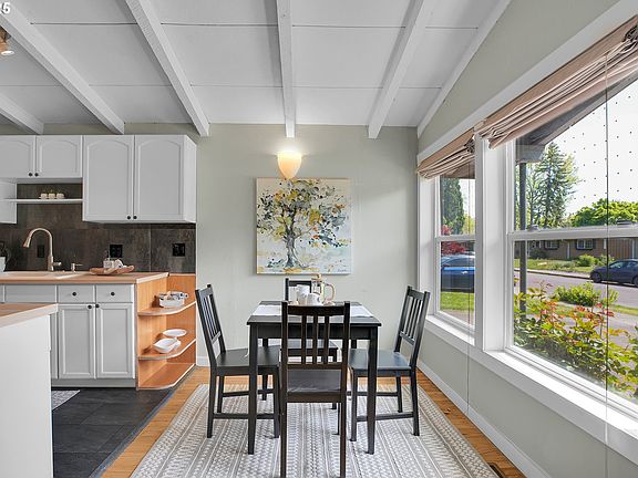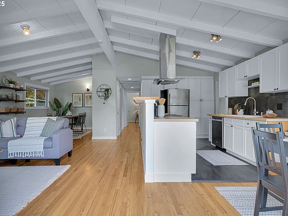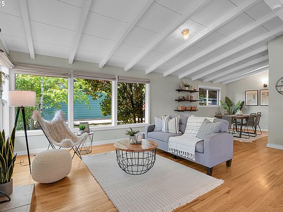 ***Please Note!! There is a 3rd BD RM OR this room can be used as a family room, media room, office space or workout space. It includes direct access to the back deck through sliding glass doors. It has a closet & windows. **Bright and welcoming, this charming one-level mid-century home offers thoughtful design and wonderful livability. Vaulted ceilings with exposed beams and oversized windows fill the space with natural light while the open-concept layout ensures effortless connection between kitchen, living, and dining areas making it ideal for gatherings both big and small. The fireplace adds a perfect touch of warmth to the area. The kitchen features a central cook island with bar seating, blending style and function for everyday enjoyment. Both bedrooms have vaulted ceilings, (the primary bedroom includes a bath) and the "3rd bedroom" includes direct access to the back deck through sliding doors (think great office space, workout room, family room, media room, or large 3rd bedroom?) A second bath adds convenience to the flexible layout. Outside, enjoy a partially covered deck, fully fenced backyard oasis, mature landscaping plus a fully enclosed side yard that's perfect for pets, gardening, or private relaxation. Nestled in a vibrant Beaverton neighborhood, you'll love nearby shopping, farmers market and parks, plus quick highway access puts everything within easy reach! This welcoming mid-century home is ready for its next chapter—make it yours today!