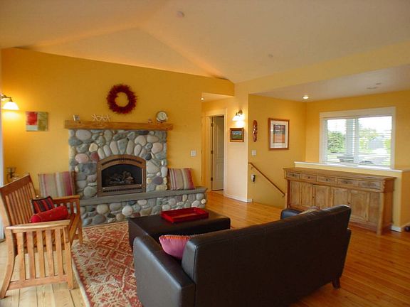 Charm and sophistication abound in this lovely view home on Vashon's coveted North end. Watch the ferries ply the waters and observe the workings of the famous Sea Breeze Farms from the large west-facing deck. Open floor plan with main floor master, mud entry, fireplace and vaulted ceilings in living area. Tons of storage in the cheery kitchen and huge lower level laundry. Downstairs find two bedrooms, very generous laundry/craft room, large family room & bath with oversized tiled shower.
