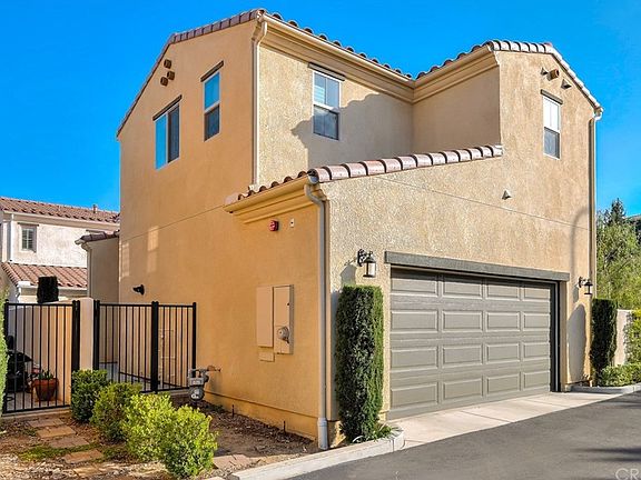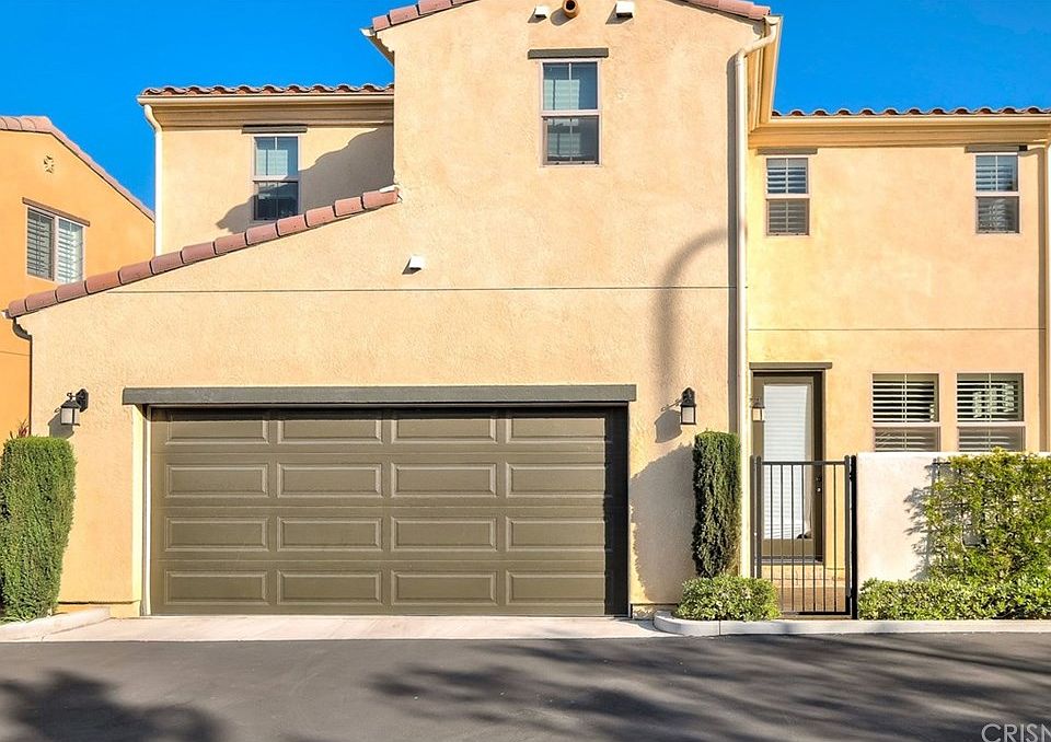 Beautifully upgraded condo in the gated community of Cortile in Porter Ranch. This completely detached end unit shares no walls with neighbors and is one of the newest and most desirable of the community. Builder upgrades include engineered hardwood flooring, custom plantation shutters, granite counter tops and back splash in the kitchen, stainless steel GE Profile kitchen appliances, upstairs laundry with Samsung washer and dryer and two extended patios. The spacious master bedroom offers a walk-in closet, large soaking tub and dual vanity sinks. The second bedroom has an en-suite bathroom as well. The complex includes two swimming pools, spa, barbecue area and is just minutes away from shopping, parks and access to the 118 freeway.