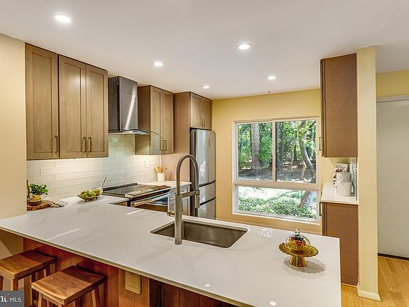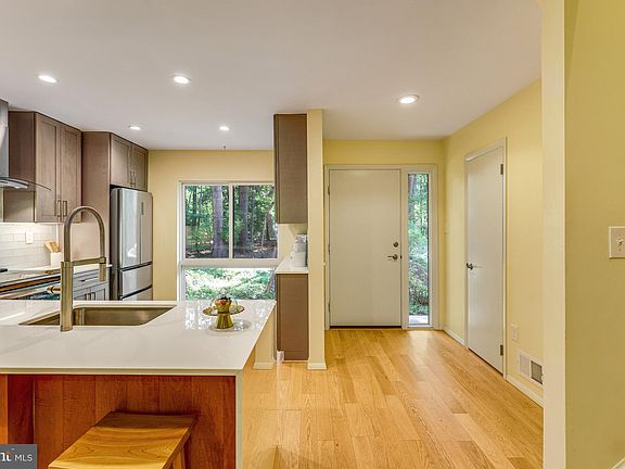 Open House Saturday July 20th! Discover this beautifully renovated townhouse that boasts three levels of exquisite living space, backing onto serene woods. The main level features an inviting kitchen, dining area, and living room with a cozy wood-burning fireplace. The modern, open kitchen is highlighted by waterfall countertops on the peninsula, offering both style and functionality. New sliding glass doors open to a spacious deck, perfect for enjoying the natural beauty of Reston. Gleaming hardwood floors run throughout the main level. Upstairs, you'll find three bedrooms with hardwood floors and two full bathrooms. The primary bedroom includes an ensuite bathroom with a large shower, while the shared hallway bathroom features a shower-tub combo. The lower level is home to a versatile rec room with sliding glass doors leading to a partially fenced backyard, a full bath, and a utility room equipped with a washer and dryer. Located just minutes from the Wiehle Metro Center, this home offers convenient access to all that Reston has to offer. Enjoy a variety of restaurants, shops, pools, tennis courts, sports courts, basketball courts, and miles of walking, jogging, and biking trails. Reston's lakes provide opportunities for boating and fishing, while the community hosts numerous activities for all interests.