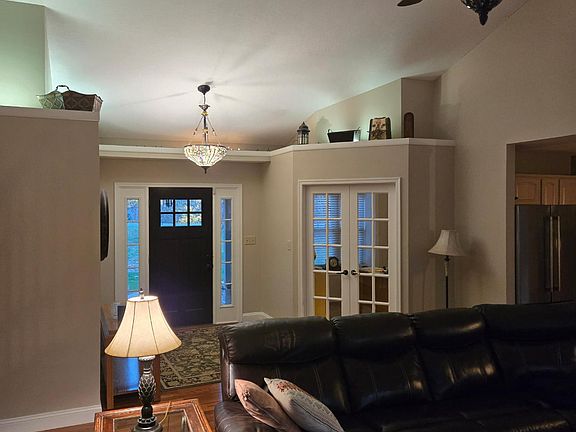 Vaulted ceilingLarge recreation roomMedia roomSpacious bedroom with bathPeaceful wooded lot