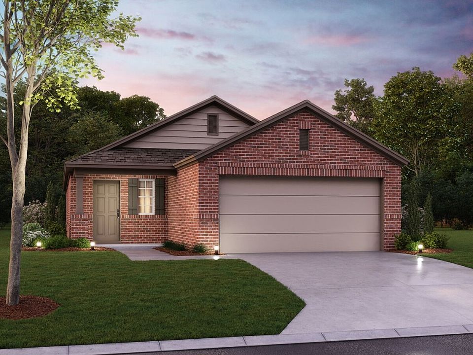 Built by M-I Homes. Are you looking for a low-maintenance living space that's both functional and impressive? Look no further! This amazing, 1-story Azalea in Mesquite is exactly what you need. The open-concept living area, complete with luxury vinyl plank flooring and large windows, is perfect for entertaining friends and family, and the oversized laundry room is a game-changer. The kitchen is a chef's dream, with ample granite counter space and an oversized island for all your culinary adventures. Plus, with plenty of upper and lower cabinets, you'll have all the storage you need to stay organized. The dining area and the bright family room are perfect for relaxation, and the sloped ceilings add a touch of elegance. A full bath and 2 bedrooms reside off a private hallway, while the owner's retreat is tucked at the back of the home. The owner's suite includes a bay window and en-suite bathroom with dual sinks, a walk-in shower, and a large walk-in closet. Schedule your visit today!