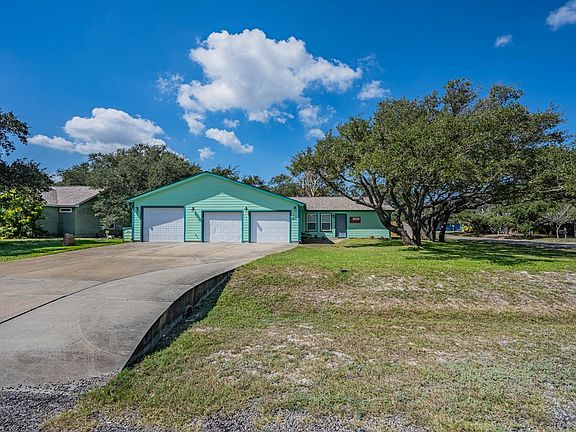 This 3 bedroom/2 bath home exudes coastal charm and sits on a spacious double corner lot in Oak Terrace. Surrounded by mature oak trees, the property offers a peaceful setting with plenty of natural light throughout. The open, split layout is perfect for comfortable living and is being offered mostly furnished. Enjoy a large laundry room, a 3-car garage with abundant storage for all of your beach toys or fishing gear, a fully fenced backyard, and a long driveway with ample space for boat parking. The outdoor oasis features a massive palapa - ideal for relaxing and catching the evening breeze. Additional features include a water well for the sprinkler system. Conveniently located just minutes from downtown Rockport, Rockport Beach, and nearby boat ramps. Embrace the laid-back coastal lifestyle you've been dreaming of!