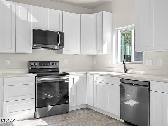 In search of a modern new build? Look no further. This home features an open concept floor plan, with 1,391 SQ FT of livable space, ceramic tile floors, quartz countertops, 9 foot ceilings, custom white kitchen cabinets, stainless steel appliances, tile showers, and dark tone finishes. Prime location near schools, church, gym, supermarkets, restaurants and 6 minute drive from Interstate-19 is an added bonus to this incredible property. Come take a look!