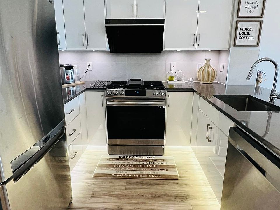 Quiet neighbourhoodOpen kitchenCustom cabinetsCustom quartz countertopGas stoveCozy home