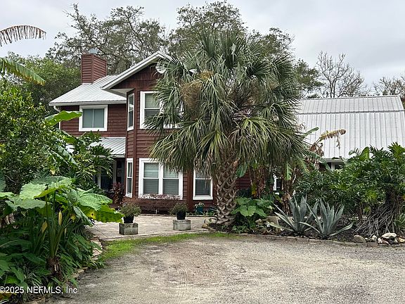 Incredible location and peacefull property in Ponte Vedra Beach backing up to Guana State Park! Enjoy peace and privacy on approx. 1.4 acres of beautifully maintained grounds with this charming 4BR/2.5BA home�just minutes from beaches, shopping, fine dining, and the Mayo Clinic. Nestled along a stunning Live Oak-lined street and bordered by the Guana Preserve, this home offers scenic views and serene surroundings. The open-concept floor plan features spacious living and dining areas, a cozy wood-burning fireplace, large kitchen ideal for entertaining, and a versatile office/TV room. Upstairs offers three generous bedrooms, a full bath, and a primary suite with adjoining bath. Built to last with 2x6 exterior walls, R-30 attic insulation, energy-efficient vinyl windows, durable metal roof, and two HVAC units. Outdoor living shines with a large deck, covered grilling area, garden/plant house, mature citrus trees, and RV/boat parking with power hookup.