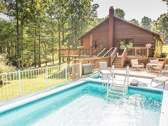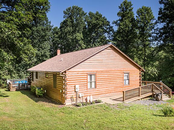 Charming and rustic western red cedar log home situated on 36 park like acres. The 3 bedroom, 3 bath home has been updated with newer roof, hvac system and beautifully updated kitchen and bath. Large finished lower level with bathroom and wood stove. Wrap around porch leading down to a perfectly maintained pool with deck. Take a stroll through the wooded trails down to your pond. This is the perfect cabin to be able to relas 24/7 but still have convenience to Hwy 29. Who needs a vacation when you own your very own resort.