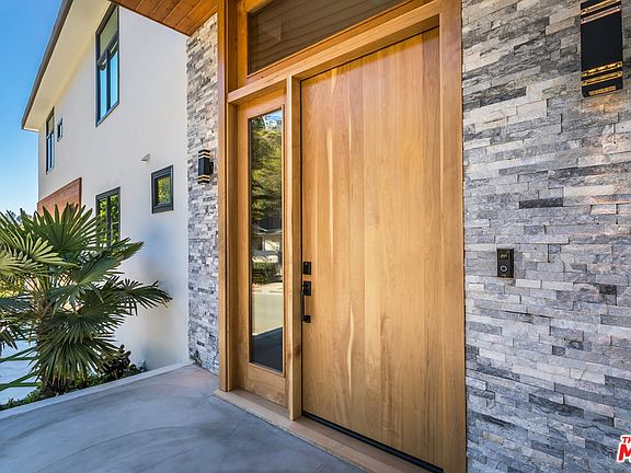Welcome to an immaculate modern home, emanating ultimate quality and design on one of the most iconic roads in all of lower Bel-Air. A grandiose, natural wood entrance opens to an expansive foyer and open floor-plan touting immense 12-ft ceilings. White washed interiors effortlessly compliment the organic wood flooring and opulent dining room with two oversized modern chandeliers. An awe-inspiring master suite is illuminated by the spa-style bathroom, vast walk-in closet, sleek fireplace and private patio looking onto the custom putting green, serene waterfall and stately outdoor fireplace. The elite gourmet chefs kitchen boasts an array of state-of-the-art stainless-steel appliances and a 6-burner stove, accentuated by an oversized marble island. Host and entertain with ease through a seamless indoor/outdoor flow, in the tucked away en suite guest quarters or on the stunning rooftop deck overlooking the canyon. Offering 120 feet of manicured curbside frontage, own true luxury.