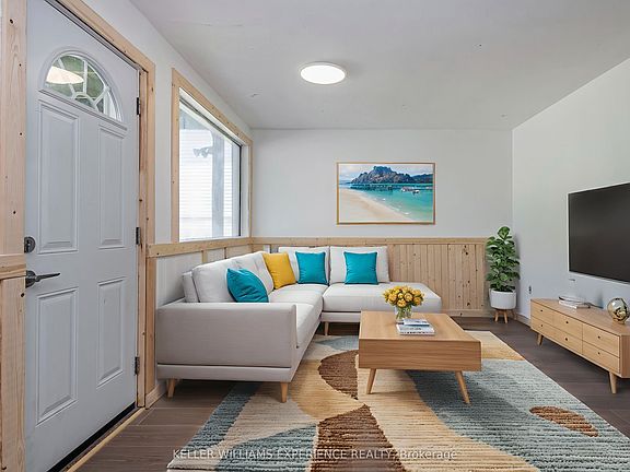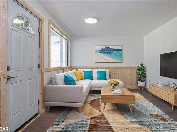 Opportunity Knocks! Bring your vision and make this charming cottage/4-season home your own. Tucked away in the desirable Sylvan Glen Beach community on beautiful Lake Dalrymple, this 3-bedroom, 1-bath, 2-storey home is just steps from exclusive access to a private sandy beach, park, and docking facilitiesmaintained by the Sylvan Glen Homeowners Association for a low annual fee. The home features a flexible layout with new flooring and fresh paint (2025). The main level includes 2 bedrooms, a cozy living area with a wood-burning fireplace, while the second floor offers the kitchen, dining area, bathroom, an additional bedroom, and access to a large deck overlooking the property, perfect for entertaining or simply relaxing. Outdoors, youll find two generous sheds ideal for a workshop or storing recreational toys, along with mature trees that provide both privacy and space for gardens or play. Enjoy the lake lifestyle year-round: boating, swimming, and relaxing in summer, or fishing in winter. Conveniently located just minutes from Orillia, Casino Rama, shopping, restaurants, and golf. Only about 1.5 hours from the GTA and 40 minutes to Barrie, this property offers the best of both convenience and retreat. Whether youre seeking a weekend getaway or a full-time residence, this home presents incredible potential in a truly special lakeside community.