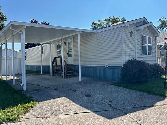 Welcome Home! Join this quiet community for 55 and over in the Glen-Aire park. This home has a great open floor plan entering the living room, eat-in dining area with large open kitchen. In the front of the home, you'll find a guest bedroom and guest bathroom. Through the living room and kitchen you'll find an expansive open primary suite with large tub and private bathroom with walk-in shower. Outside, a carport perfect for avoiding spring rain and winter snow. There is a convenient located shed for lawn tools and garden storage! New a/c 2025, newer water heater, roof and furnace. Newly insulated last year and new white skirting being added making the exterior updated and modern. This home is being sold with all appliances listed. Possession at closing. Listing agent is local and ready to meet you at your convenience. Call for your private showing today! Buyers agents see Agent Only Remarks for access code.