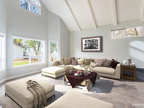 This MOVE-IN ready 2 bedroom 1 bath home, PLUS an office/additional bedroom will charm you with its PALATIAL cathedral ceilings & light and bright living spaces. Also note worthy are the huge view windows and cozy wood burning stove! Step up into the bonus seating area, dining area and cute kitchen with a large pantry for storage. Take in views of the large private front yard off the kitchen! The master bedroom offers a sitting room of its own or could be a second office! Laundry room is also conveniently located in the master, as well as a walk in closet. Spacious yard with mature landscaping, citrus tree and 2 CAR detached garage. Alley access off the back. Close to shopping, schools, medical facilities and hiking/biking trails. This is a must see in such a convenient DOWNTOWN location