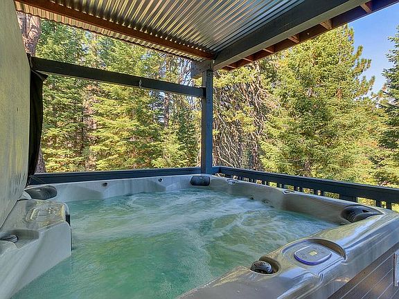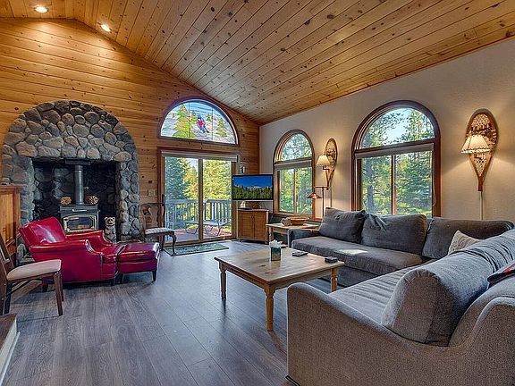 Admire a lovely sea of pines from this 4BR Tahoe Donner home! Boasting nearly 2,300 sq. ft. of living space, the interior includes a plush primary suite, a well-equipped kitchen, and a wood-burning stove. Enjoy a private hot tub and 3-car garage. Sleeps 10 The space Boasting nearly 2,300 square feet of inviting living space, this charming 4BR/3BA home provides abundant alpine appeal and a peaceful creekside setting. Cozy up by the wood-burning stove, whip up delicious dishes in the well-equipped kitchen, and dine alfresco on your scenic back deck. Rejuvenate with relaxing soaks in the six-person hot tub. Additional highlights include a full-home solar power system with Generac storage batteries (to help you get through those tough weather days), new gas grill, a private three-car garage with a Tesla charger, and a plush primary suite.