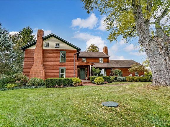 Nestled in seclusion on 20.5 acres sits a nicely kept log home, from approximately 1813 +/-, in a charming rural area with amazing views. This beautiful log home was added onto in the 1980s and includes redwood siding, brick fireplaces, wood floors, and beamed ceilings to capture the essence of yesteryear. Please note the MLS records are showing 5,670 sq ft but the correct figure is 4,266 Sq Ft There’s plenty of room for everyone with 5 bedrooms and 3 baths. Let it sizzle or freeze because you are sure to be comfortable with the geothermal heat pump. Come see all of the other amenities including a large garden, a large covered patio with pergola, a living room, a large family room, and a spacious multi-purpose room with a cathedral ceiling. The kitchen is fully equipped with custom hickory cabinets, a 4’x8’ quartzite island, and appliances are included. There’s a handy laundry room plus the 17X13 primary bedroom attached with a 14X11 powder room including an extra-large shower, a soaking tub and commode—all on the first level. Completing the landscape are 2 large barns with metal roofs and a fabulous 16X11 garden house with loft and 16X10 covered porch. Mini llamas, goats, and geese accompany the eye-catching pond out front.