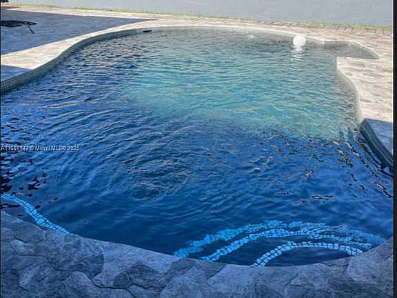 Beautiful one-story home with 3 spacious bedrooms and 3 full bathrooms. Features a 2020 roof and no HOA! Enjoy a free-form pool and fully paved backyard, perfect for entertaining. Filled with natural light through abundant windows. Includes a 2-car garage, new washer/dryer, and a stunning 2021 remodeled kitchen with large peninsula and stainless steel appliances. Tankless water heater, accordion shutters for hurricane protection, and multiple living areas—foyer, family, dining, and living rooms. Master bathroom offers an oversized shower for ultimate comfort. Move-in ready! Great location close to good schools ,shopping, banks and much more ! No flood zone