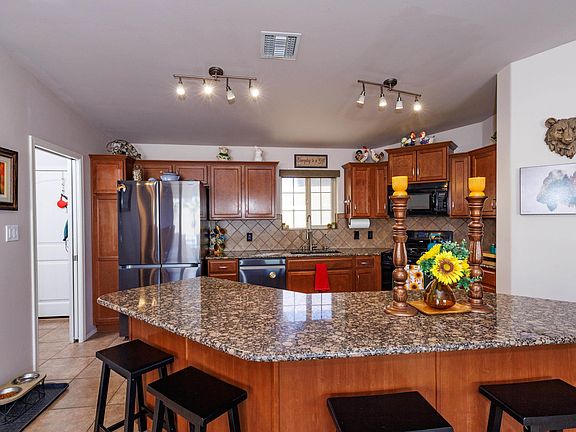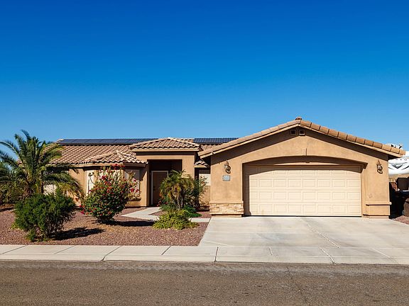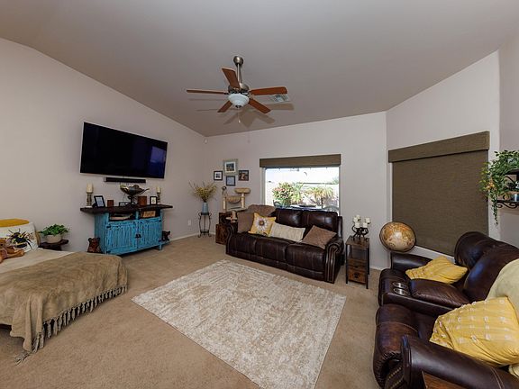 This beautiful corner lot features a 3-bedroom, 2-bathroom pool home with a 2-car garage and stunning landscaping, complete with an installed watering system. Inside, you'll be greeted by vaulted ceilings and spacious living and dining areas. The kitchen is fully equipped with a gas stove, granite counters, and an island with a breakfast bar, making it perfect for entertaining. The main suite offers a walk-in closet, a walk-in shower, and a relaxing garden tub. Plus, the backyard is an oasis with a covered patio and a refreshing and heated pool, ideal for year round enjoyment! Notably, this home comes with paid solar with a new inverter, along with a new tankless water heater and remote-controlled blackout blinds.