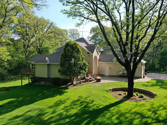 From the stamped concrete walkway to the stunning grand entrance you will appreciate all of the detailed design that went into this home. This one-owner, meticulously maintained home offers over 3,400 finished square feet of beautifully designed living space, combining comfort, versatility, and functionality. Nestled on 5 peaceful acres with serene pond views, this property is a rare find. Inside, you'll find 5 spacious bedrooms and 4 bathrooms, including a recently updated primary suite and a flexible main-floor office with built-in that can easily serve as a guest bedroom. The main level also features newer carpet, a cozy gas fireplace in the living room, and both formal and casual dining spaces to suit your lifestyle. Enjoy year-round relaxation in the stunning 4-season porch, or gather in the lower-level family room—complete with its own gas fireplace, an additional bedroom and bath, plus a rough-in for a future wet bar area. Storage and hobby space abound with a 35x30 heated and insulated attached garage, plus a lower tuck-under garage ideal for equipment or workshop needs. A spacious mudroom off the garage entrance adds everyday convenience. Don’t miss this incredible opportunity to own a thoughtfully cared-for home with abundant space, natural beauty, and endless potential.