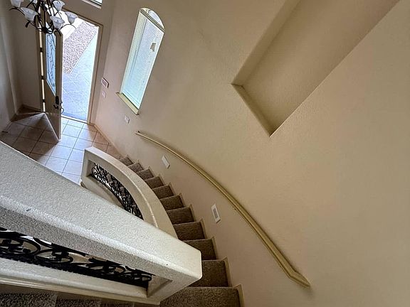 4 bedrooms, 2 story home located in the Sandstone Ranch Estates subdivision. Built in 2012, features 2428 sq. ft. of living area. Family room, dining room and den with fireplace. Open kitchen with island, granite countertops, plenty of storage space and all appliances included. Indoor laundry room with washer and dryer hookup. 3 baths. 1 downstairs bedroom and 3 bedrooms upstairs. Master bedroom features a large walk in closet, 2 sink vanity, jetted tub, separate shower. All bedrooms are good size with ample closet space. Front and backyard with low maintenance rock landscape. Backyard offers a great view of the Franklin Mountains. 2 car garage. Refrigerated A/C. Easy access to shopping, entertainment, dining, Fort Bliss, I-54. Pets may be allowed subject to restrictions and additional fees. Wilkl be avaiulable for move -in November 1,