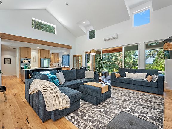 Scandinavian-Inspired Retreat on 2.36 Acres with valley views, nestled among mature trees and surrounded by a serene natural landscape just minutes from town. This property boasts valley views, abundant birdlife, and a tranquil atmosphere that feels worlds away. Step inside to a beautifully curated interior where minimalist design meets rustic warmth. Main level living with the bonus room on the upper level. Light pours through large windows, highlighting the home’s clean lines and natural textures. The spacious open-concept living area features rustic hickory floors and custom Beachwood cabinetry, blending modern elegance with earthy charm. Stunning kitchen features an expansive cook island, quartz counters, open shelving, tons of drawer storage & pantry. A specially designed large awning window above the kitchen sink overlooks the stunning backyard view. Primary bedroom suite with large step-in shower, spacious double vanity. Jack and Jill bath between 2nd & 3rd bdrms. Other features include unfinished basement with separate entrance perfect for storage. Wired for Generator. Designed with nature in mind, the home invites indoor-outdoor living with room to garden, relax, and enjoy the ever-changing landscape. Whether you're savoring your morning coffee on the patio or watching the sun set behind the trees, this property offers a rare combination of style, seclusion, and connection to nature.