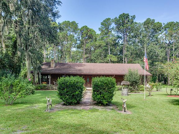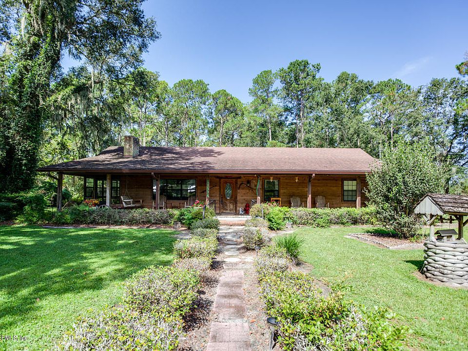 Multiple offers- HOB due Sunday 6 PM. 5 ACRE Ranch! This charming, move-in ready home has been completely updated inside with magnificent quartz countertops, updated white cabinetry (soft close), new backsplash, new fixtures, & SS appliances. You'll love the brand NEW laminate wood floors, carpet, tile, & AC...also high ceilings (no popcorn), brick fireplace, updated bathroom fixtures & gorgeous porches. The spacious master suite features a walk in closet, large jetted tub & separate shower. This private home, zoned for horses, is surrounded by trees you can view from wrap around front porch. The large detached 2 car garage w/ additional carport is great for storing large vehicles or a boat. An architectural shingle roof w/ NEW Gutters, water softener, & 2 yr old generator are included!