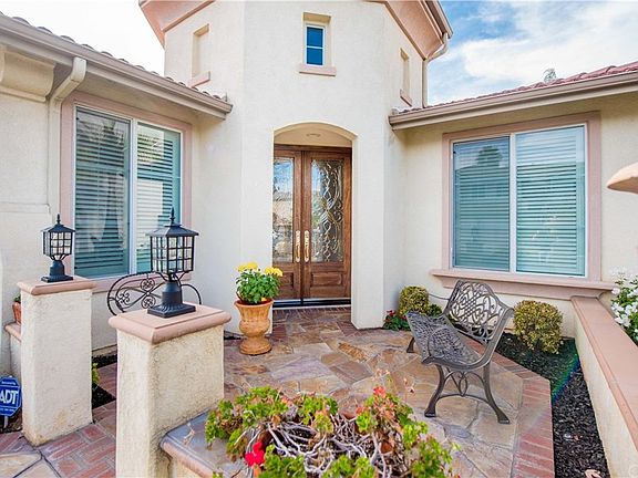 Amazing and rare opportunity to own this meticulous single level home in the sought-after Montecito of Riverwalk. This popular model is rarely available, located on a quiet, private, community of lush greens. Impressive high ceilings welcome you to this light & bright open floor plan. Oversized bedrooms allow for a dual master use. The 4th bedroom is perfect for guests or a home office. Oversized kitchen w/white cabinetry, granite countertops, stainless steel appliances, extended breakfast bar, and all the trimmings. This beautifully equipped kitchen opens to the spacious dining nook & family room Beautifully appointed French doors lead to the backyard, perfect for entertaining. Fireplace in the family room adds for a cozy night. Spacious living room offers great opportunities for entertaining. The abundantly sized master suite features a retreat area w/fireplace for those cool evenings & walk-in closet. Updated French doors allow direct access to your serene backyard off your master retreat. Centrally located off the 91 & 15 frwy or easy commute. A place to call home has been admirably maintained and cared for. Will not disappoint you.