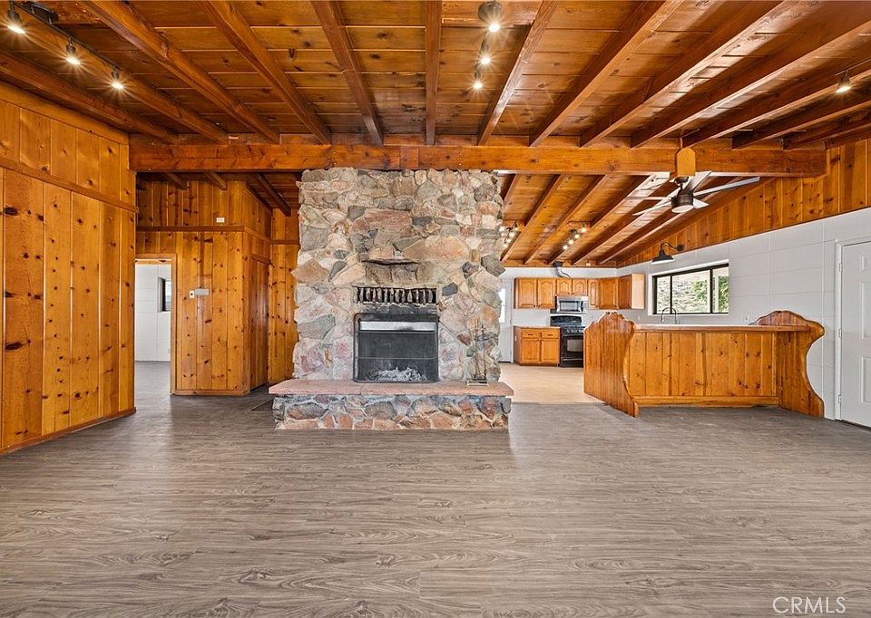- Beamed Ceilings, Ceiling Fan(s), High Ceilings, Open Floorplan, Track Lighting, Wood Product Walls, All Bedrooms Down, Bedroom on Main Level