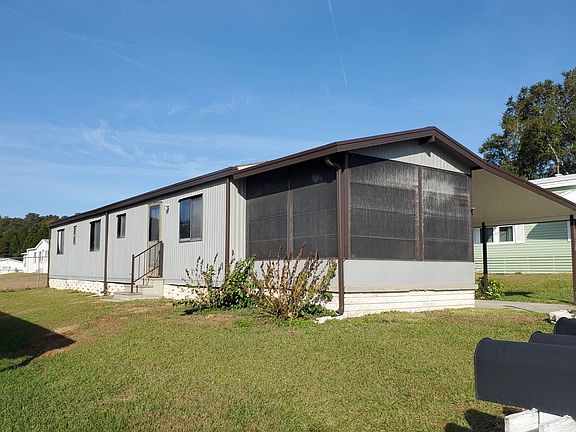 THIS HOME IS ON LEASED LAND WITH A MONTHLY LOT RENT OF $540 AND INCLUDES SEWER AND TRASH. COMPLETELY REMODELED 2 BEDROOM AND A OFFICE/ DEN , 1 BATH HOME WITH NEW ROOF , NEW HVAC UNIT AND SUBFLOORS AND FLOORING, NEW PAINT INSIDE AND OUT. NICE SIZE KITCHEN, LIVING ROOM AND WALKING DISTANCE TO THE CLUBHOUSE. DON'T PASS UP THIS DEAL. IT'S WON'T BE AROUND LONG. FISHERMANS COVE IS A 55+ COMMUNITY LOCATED IN DADE CITY WITH A BEAUTIFUL VIEW OF LAKE PASADENA AND A FISHING PIER. THE LOW LOT RENT INCLUDES SEWER AND TRASH. ALL CURTAINS WILL REMAIN. FOYER LOVELY SHABBY CHIC AREA WITH NEW VINYL TILE AND A BUILT IN COAT RACK. KITCHEN VERY NICE KITCHEN WITH PLENTY OF NEWLY EPOXIED COUNTER-TOPS AND REFURBISHED CABINETS, NEW SINGLE SINK WITH VIEWING WINDOW, NEW LIGHTED CEILING FAN, NEW GREY SUBWAY TILE BACK SPLASH, NEW SUB FLOORS AND LAMINATE FLOORING. APPLIANCES INCLUDES A NEWER SAMSUNG FRENCH DOOR, BOTTOM FREEZER REFRIGERATOR, FRIGIDAIRE SMOOTH-TOP STOVE, WHIRLPOOL ABOVE STOVE MICROWAVE AND A FRIGIDAIRE DISHWASHER. A NEW PORTABLE PANTRY WAS PLACED IN-BETWEEN THE LIVING ROOM AND KITCHEN. LIVING ROOM 14 X 14'4" SPACIOUS WITH BRIGHT WINDOWS, NEWER CEILING FAN, NEW SUB FLOOR AND NEW LAMINATE FLOORING, NEWLY BUILT SHELF AND A GLASS SLIDER TO THE FLORIDA ROOM. A LARGE SECTIONAL COUCH WILL REMAIN IN THE HOME. MASTER BEDROOM 10'6" X 11 QUEEN SIZE ROOM WITH BUILT-IN REFURBISHED WALL CLOSET AND DRAWERS, LIGHTED CEILING FAN AND NEW SUB FLOORS AND A LARGE AREA RUG, THE SAME SIZE AS THE BEDROOM. LOCATED AT THE BACK OF THE HOME WITH PLENTY OF NATURAL LIGHT. A QUEEN SIZE BED IS INCLUDED. MAIN BATH LARGE BATHROOM WITH LONG SINGLE SINK VANITY, NEW MEDICINE CABINET, LINEN CABINET , AN OVER SIZED WALK-IN SHOWER, NEW BACK SPLASH AND NEW LAMINATE FLOORING. VERY UPDATED AND SO PRETTY. OFFICE/ DEN 9 X 10 GREAT SPACE FOR AN OFFICE OR EVEN A 2ND GUEST BEDROOM. SLEEPER SOFA WOULD LOOK GREAT. THIS ROOM ALSO HAS NEW SUB FLOORS AND AN AREA RUG THE SAME SIZE AS THE ROOM. A TWIN BED AND NIGHTSTAND IS INCLUDED. THIS ROOM DOES NOT HAVE A CLOSET. GUEST BEDROOM 9'7" X 12 GUEST BEDROOM IS LOCATED OFF THE FOYER AND COMPLETELY SEPARATE FROM THE OTHER BEDROOMS. IT HAS AN AREA RUG THE SAME SIZE AS THE BEDROOM, LIGHTED CEILING FAN AND A LARGE WALL CLOSET. THIS ROOM HAS A HAIER WINDOW A/C UNIT IN THE WALL BUT WAS ALSO NEWLY VENTED FROM THE NEW HVAC UNIT AND CAN FIT A QUEEN SIZE BED. GREAT BONUS AREA THAT YOU CAN USED FOR ANYTHING. IT IS ALSO VERY PRIVATE. LAUNDRY GE WASHER AND DRYER WITH STORAGE ABOVE AND LOCATED IN THE HALLWAY. THE FABIC BUTTON IS MISSING BUT STILL WORKS GREAT. FLORIDA ROOM 10 X 11 GREAT VIEW FROM THE FRONT FLORIDA ROOM OF THE CLUBHOUSE AND LAKE PASADENA. IT HAS VINYL WINDOWS WITH NEW LAMINATE FLOORING WITH A LIGHTED CEILING FAN. SOME OF THE VINYL WINDOWS NEED REPAIR BUT IS A VERY EASY, INEXPENSIVE REPAIR EXTERIOR 6 X 8 STORAGE SHED OFF THE DRIVEWAY 2 CAR CARPORT / 3 CAR DRIVEWAY MAILBOX IN FRONT OF THE HOME. CLOSE TO POOL AND CLUBHOUSE LOTS OF PLACES TO PLANT ROOF WAS REPLACED IN 2019 HVAC IS REPLACED IN 2021 FISHERMANS COVE IS A LOVELY PARK LOCATED IN DADE CITY. LOT RENT IS $540 A MONTH AND THAT INCLUDES SEWER AND GARBAGE PICKUP. WATER AVERAGES ABOUT $13 A MONTH. THE PARK OFFERS A HEATED POOL, SHUFFLEBOARD COURTS, POOL TABLE AND MUCH MORE. BEAUTIFUL VIEW OF A LAKE IN BACK GROUND. A WALK WAY LEADS TO A PIER ON THE LAKE WITH A SCREENED IN AREA TO SIT. FISHING IS EXCELLENT WITH MANY DIFFERENT FISH TO CHANGE, IT IS NOT A CATCH AND RELEASE, FISH IS GOOD ENOUGH TO EAT. POP INTO HISTORIC DADE CITY AND SHOP IN THE MANY ANTIQUE SHOPS. LOCATED NEXT TO SHOPPING, MEDICAL AND A SHORT DRIVE TO MANY ATTRACTIONS. All listing information is deemed reliable but not guaranteed and should be All listing information is deemed reliable but not guaranteed and should be independently verified through personal inspection by appropriate professionals. American Mobile Home Sales of Tampa Bay, Inc. cannot guarantee or warrant the accuracy of this information or condition of this property. The buyer assumes full responsibility for obtaining all current rates of lot rent, fees, or pass-on costs associated with the community, park, or home from the community/park manager. American Mobile Home Sales of Tampa Bay, Inc. responsible for quoting of said fees Attachments