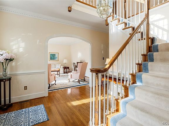 Expansive and elegantly designed by James Ziegler, this stately 5-bedroom, 3.5-bathroom brick colonial nestled in the esteemed Windsor Place West community of Henrico exudes grandeur and comfort. The main level welcomes you with a generously proportioned kitchen offering ample space for culinary pursuits and gatherings. An adjoining butler's pantry seamlessly connects to the sophisticated formal dining room, enhancing the overall grace and functionality of the home. The main level also features a welcoming family room distinguished by a charming fireplace, perfect for cozy evenings and entertaining guests. The Primary Bedroom Suite, also on the first floor, stands out with its luxurious full bathroom, creating a private oasis for relaxation and rejuvenation. Upstairs, the home graciously hosts 4 well-appointed bedrooms, providing flexibility and ample space for rest and privacy. Boasting classic brick architecture and a thoughtful layout, this residence harmoniously combines modern convenience with timeless charm, creating an inviting and comfortable sanctuary for you and your family to call home in the heart of the Windsor Place West community.