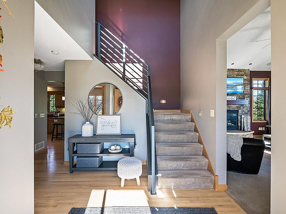 Stunning two story located in the beautiful Wind River Estates of Princeton, nestled on 2.51 acres. This one shows like a model! Attention to detail shines throughout! Enjoy a great open floor plan w/vaulted ceiling accented by a floor to ceiling stone front gas fireplace, 4BRs, 4BAs and huge kitchen w/granite countertops, raised oak cabinetry, wine rack & SS appliances. Convenient upper-level laundry, den/office w/glass panel door & patio door leading to a massive deck with accent lighting. The MBR features a vaulted ceiling w/private whirlpool bath, dual sinks, separate shower and spacious walk-in closet. The walkout lower level offers a nice size family/am room, flex room, full BA, in floor heat, plus an ample amount of closet storage. In addition, you will find an oversized 3 car garage, matching 36 x 26 detach garage, central vacuum system, surround sound speakers, extensive landscaping, irrigation & beautiful decor thru-out w/tons of updates. Come check it out! You will not be disappointed.