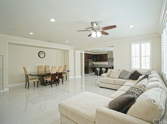 Gorgeous two-story home for sale in Montecito Place community of Chino. This home has 4 spacious bedrooms along with 3 bathrooms. Marble flooring throughout the living room, kitchen, family room and plantation shutters downstairs. The gourmet kitchen features granite Center Island, countertops, stainless steel appliances and plenty of cabinet space. One bedroom and one bath downstairs. Loft area upstairs for entertainment. Master suite with large walk-in closet, dual sinks, separate shower, and soaking tub. Low maintenance backyard. Community offers a sparkling swimming pool, BBQ grill and grassy areas for entertainment. Low HOA fee and low property tax. Close to 60, 71,10 and 15 freeway and Chino town square. Plenty of curbside appeal and Move-in ready!