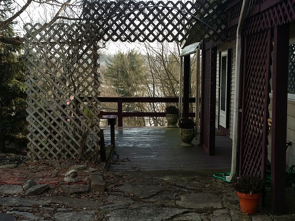 Beautiful seasonal views of the Ohio River with close to 5 acres. Can walk to River Park for exercise and/or downtown. Wood-burning fireplace and sun porch. On city sewer line. Large loft above detached garage that can be converted to another living space or for artist studio. There are two full bathrooms and two 1/2 half bathrooms. Just put on new roof over garage and most of the house ($6,500, 2014). Converted from septic tank to city sewer in 2011 ($6,000).
