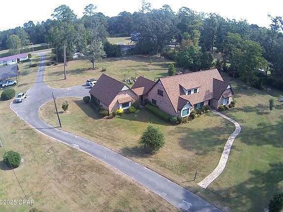 Located in the heart of Graceville, Florida across from Lake Albert and affectionately known as ''the Doctor's House'', this custom built, mid-century modern estate is a 2 story, 4000+ square feet, 4 bedroom/3.5 bathroom brick home on a sprawling 2.45 acres. With modern updates and original charm, the spacious floorplan features a formal living and dining room, open concept family room/den with a bar, breakfast nook and fireplace, private office with separate entrance, game/play room above the 2 car garage, large kitchen, pantry and laundry room and tons of storage. The exterior is lovely brick with a deep gable roof and matching walkways and accents surrounded by traditional Southern landscaping including azaleas, muscadine, old and new live oaks, pine, pecan, cypress, willow and fruit trees. The acreage includes a wet weather creek with bridge, 36 x 48 pole barn, 50 amp RV hookup and pad, private well, front and rear driveway access, dog pen/chicken coop, fire pit, back porch and breezeway and great outdoor living spaces. This is the perfect place to spread out, entertain and enjoy serene country living in a quiet neighborhood, convenient to town. This lovely piece of paradise is turnkey and ready for move in just in time for the holidays.