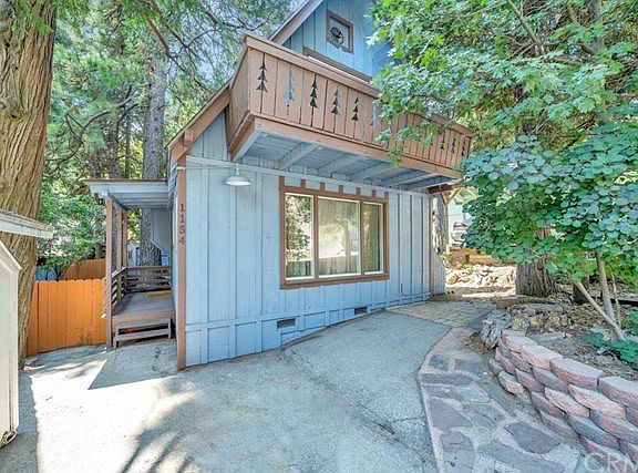 GORGEOUS TURNKEY MOUNTAIN CABIN. 1154 Bear Springs Rd is the perfect mountain retreat with a convenient location less than a half a mile from Highway 18. The first floor features an open floor plan with the Kitchen, dining area and family room forming a single, spacious living area. With plenty of windows and a beautifully crafted stone fireplace, the family room is the dream gathering space to warm up from the winter weather or admire the mountain landscape. The second floor features two bedrooms with pitched ceilings. The front facing bedroom has access to a balcony and the rear facing bedroom features a loft accessed by a built in ladder. As an extension to the living space, the deck in the backyard is spacious and perfect for entertaining under the pines. Large shed and chicken coop are included.