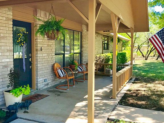If peace & privacy are important then this immaculate home at the end of a well maintained & sparsely populated cul-de-sac is just for you! Yards from the golf club & sitting on 2 lots it is a rare offering on the Fort as it's surrounded by green area on all 3 sides giving you unobstructed views of the massive oak trees,native birds,axis & gorgeous Las Moras Creek! A charming front porch opens to a spacious,light filled layout w/lots of windows,new tile flooring,a bright kitchen flowing to den w/clear span windows,bookshelves & fireplace, a spa-like ensuite master bath w/huge soaking tub & more! Loads of custom built in storage throughout, utility room w/office cubby,breezy screened in porch,16x10'store room even a fenced dog run w/custom dog house! Features are endless, must see!
